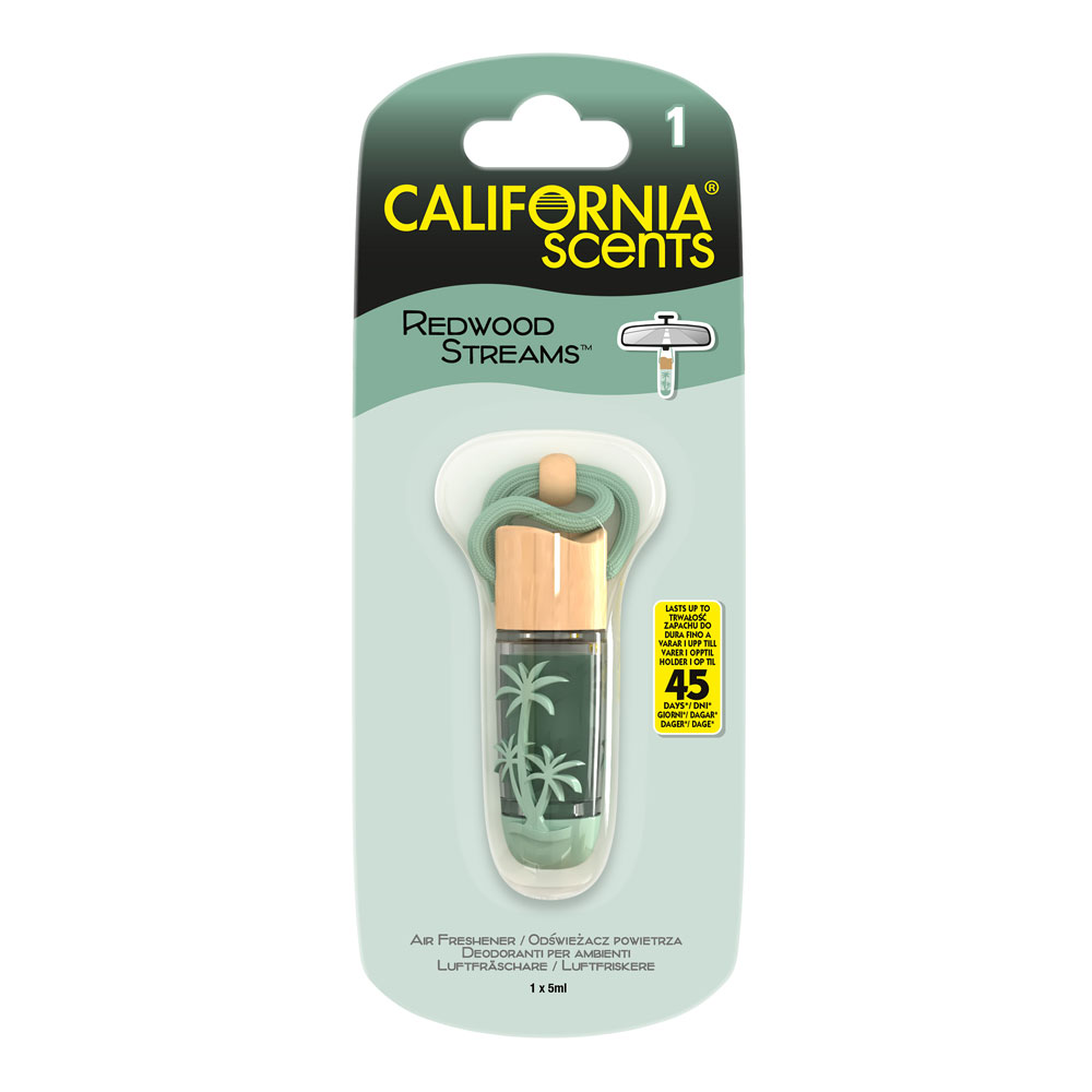 🌲 A bold, refreshing, nature-inspired scent — perfect for every journey!o your rear view mirror or other desired location away from other surfaces. Let it dangle, and start breathing easy, knowing every breath you inhale has the essence of California. Let it hang for up to 45 days*, then switch it out for another Hanging Vial. Affordable and easy to use California Scents auto air-fresheners are an excellent solution for delivering bold scents to your car, truck, or van.