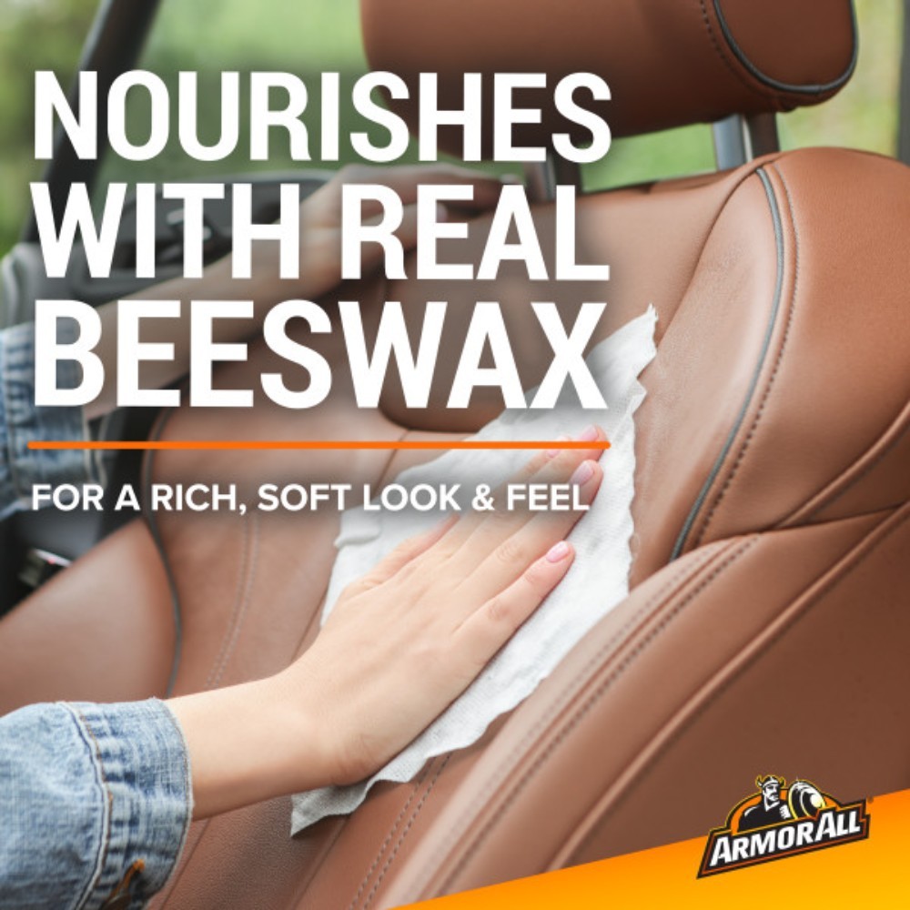 Armor All® Leather Wipes for your car help protect the look and feel of leather to keep it looking like new. These biodegradable wipes are specially formulated to clear dirt and grime safely and effectively, while beeswax offers additional protection against spills and stains. Available in a soft packaging for cleaning on the go or in a tub format to store in your car boot or home garage.