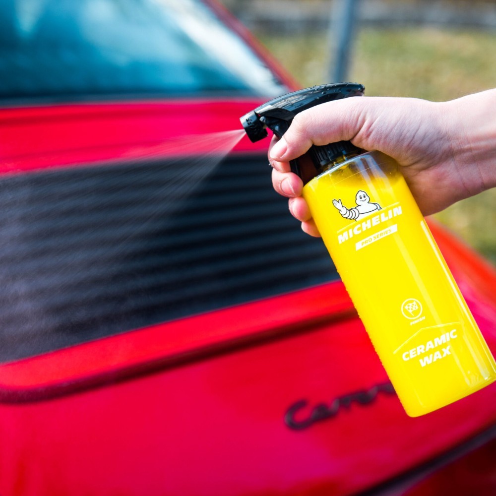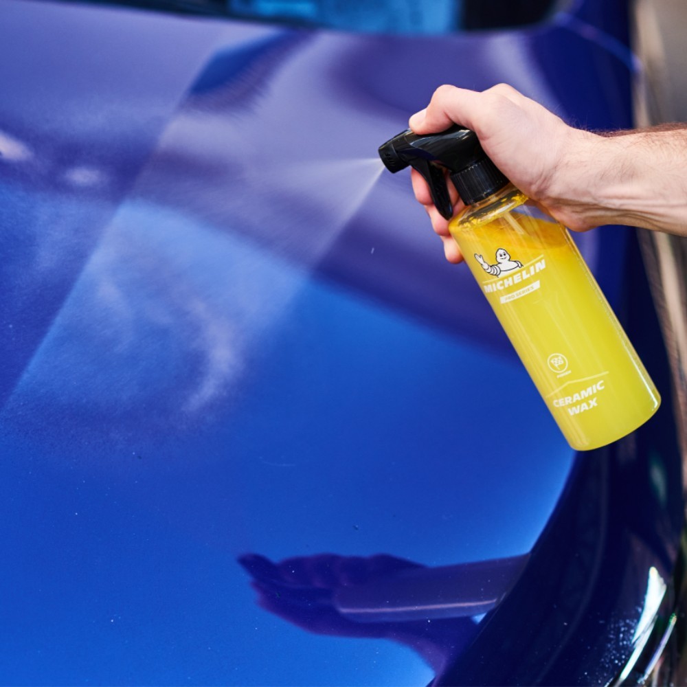 MICHELIN Pro Series Ceramic Wax is a special formula with high grade Si02 Impregnating agent forming a glossy hydrophobic protective barrier on vehicle bodywork. Oil and water repellent, this Ceramic Wax protects the paintwork from the elements. It is easy to apply and remove, offering incredible beading.