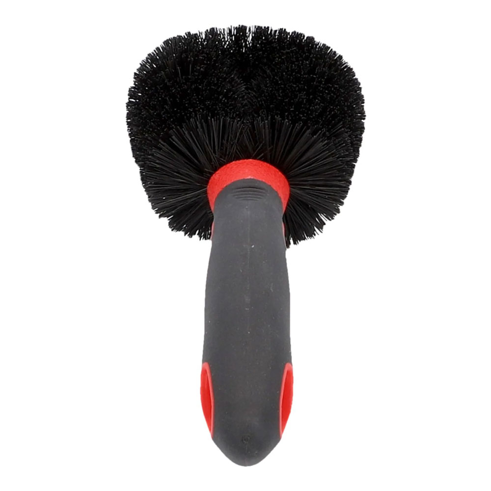 The NIGRIN Wheel Brush makes cleaning wheels easier and helps remove stubborn and hard-to-reach dirt from steel and aluminum wheels. The NIGRIN Wheel Brush is the ideal solution for dirty wheels. Thanks to its particularly soft bristles and their high density, rims can not only be cleaned quickly, effortlessly and thoroughly, but also particularly gently. Even stubborn dirt and baked-on brake dust can be easily removed from the rim, and the soft bristles and coated wire protect the rim surface from scratches. The comfortable, non-slip handle provides a secure and comfortable grip and makes it easy to work on the rim. Thanks to the special arrangement of the bristles, even hard-to-reach areas behind the rim spokes can be reached effortlessly. After cleaning the rims, the soiled brush simply needs to be cleaned with warm water and is then ready for re-use.