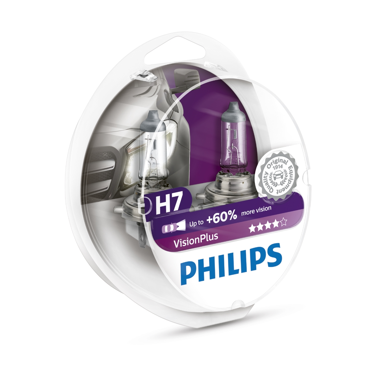 Philips Vision Plus H7 is a reliable halogen bulb designed for everyday use and a higher level of safety. With up to 60% more light output compared to standard bulbs, it delivers a longer light beam and improved clarity during night driving, without dazzling oncoming traffic.