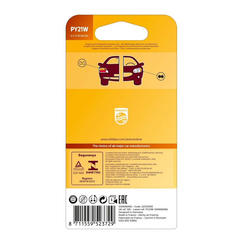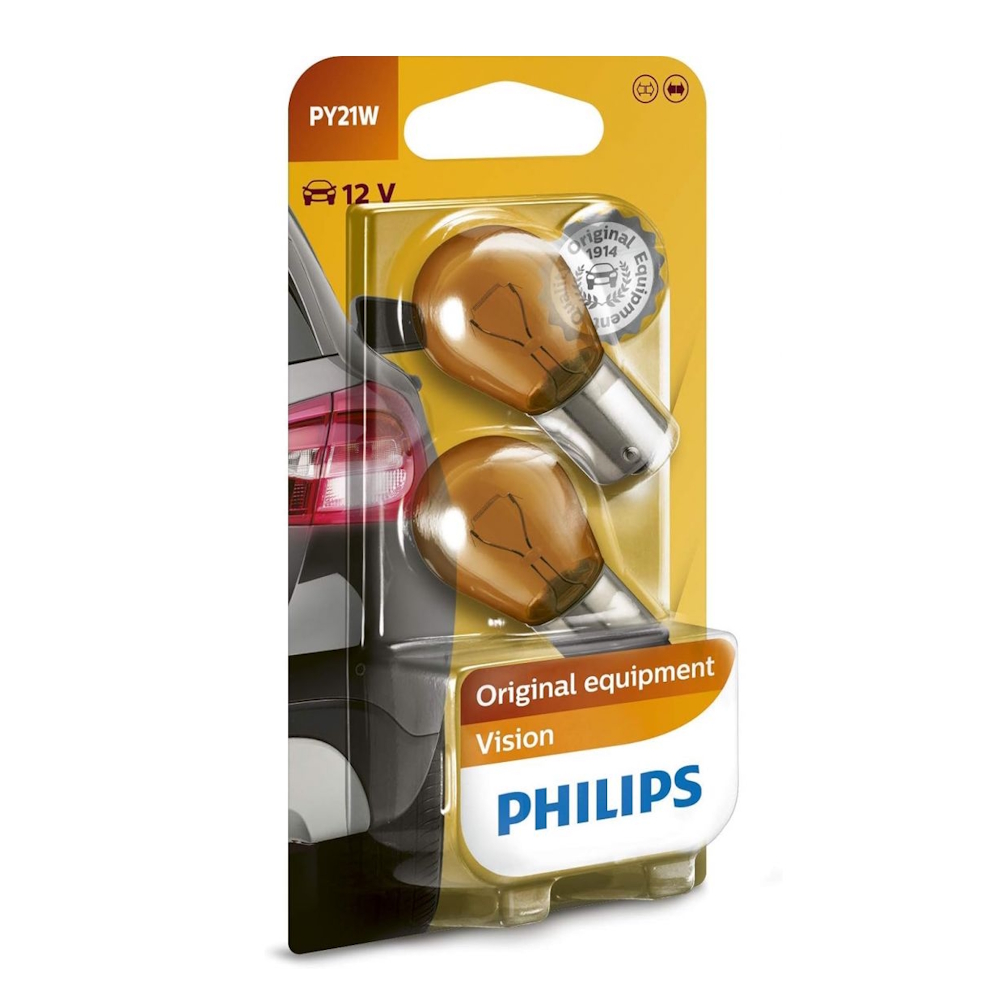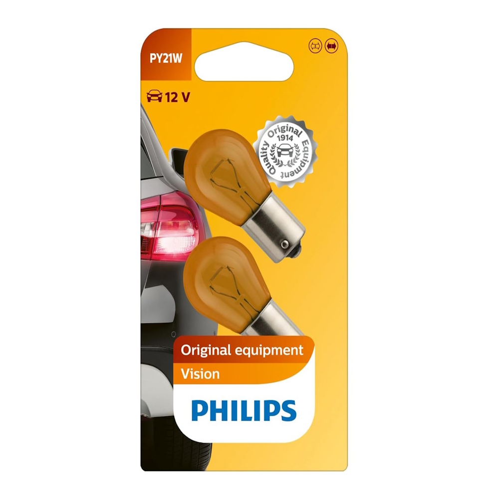Philips PY21W is a high-quality signal bulb designed for turn indicators, side marker lights, and rear position lights. With a bright amber color and reliable performance, it provides a clear and fast light response, visible in all conditions.