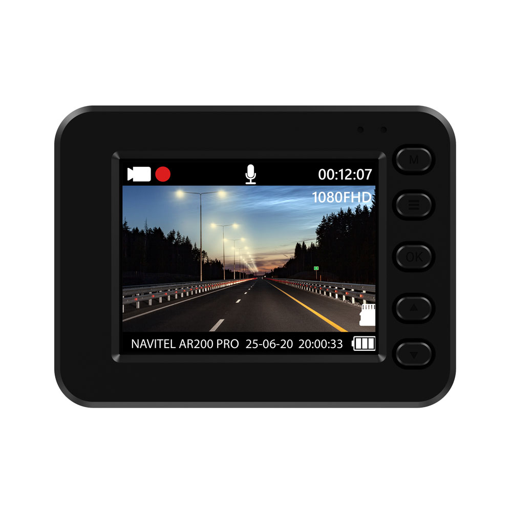 The NAVITEL AR200 PRO dashcam has a built-in impact sensor (G-sensor) that protects against rewriting video made during a collision or sharp manoeuvre.