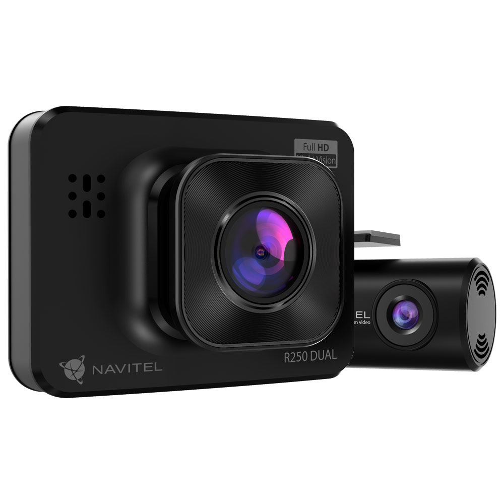 NAVITEL R250 DUAL is a new modern compact dashcam with an additional rearview camera.