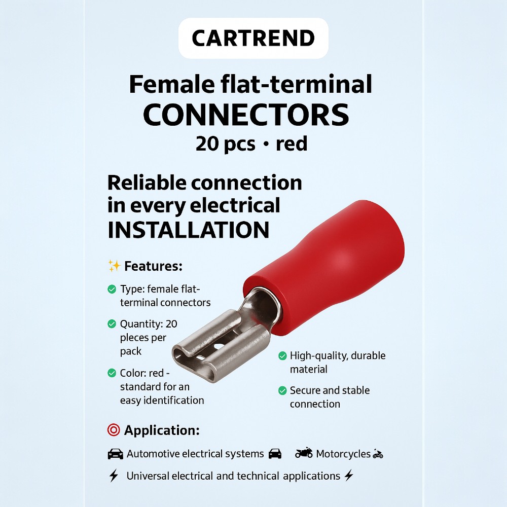 A professional set of female flat-terminal connectors that ensure stable and reliable electrical connections. Ideal for quick and safe cable linking in automotive repairs, electrical installations, and hobby projects.