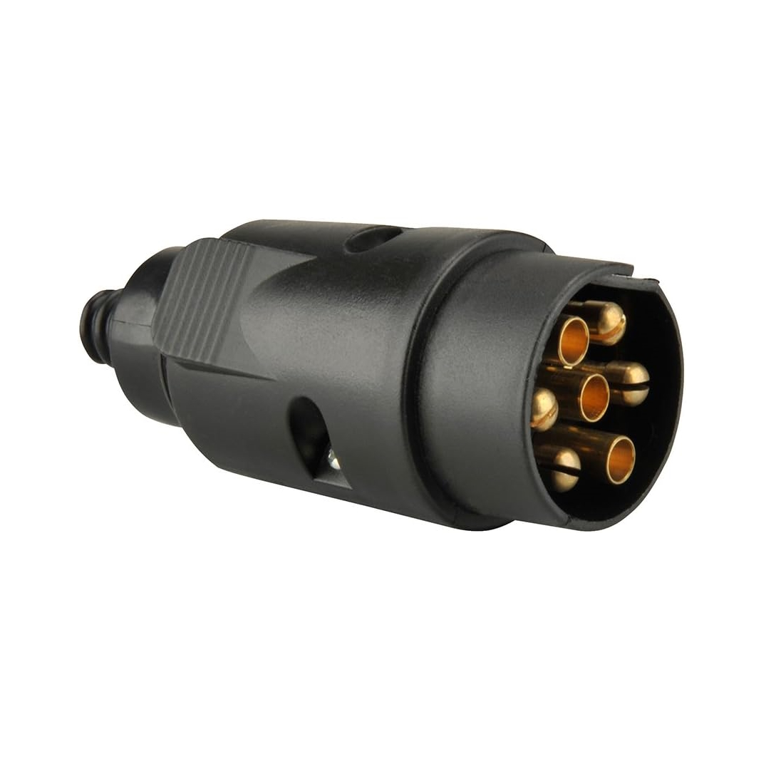 This durable and reliable 7-pin plug provides safe and efficient connection between the vehicle and the towed equipment. It supports transmitting essential electrical signals such as tail lights, turn signals, brake lights, and reverse lights.