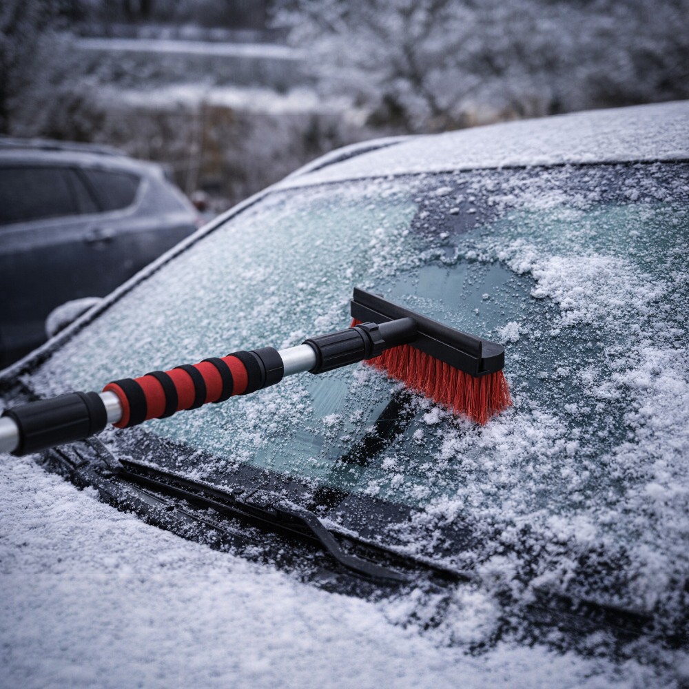 🧹 Brush with soft bristles – removes snow without scratching surfaces