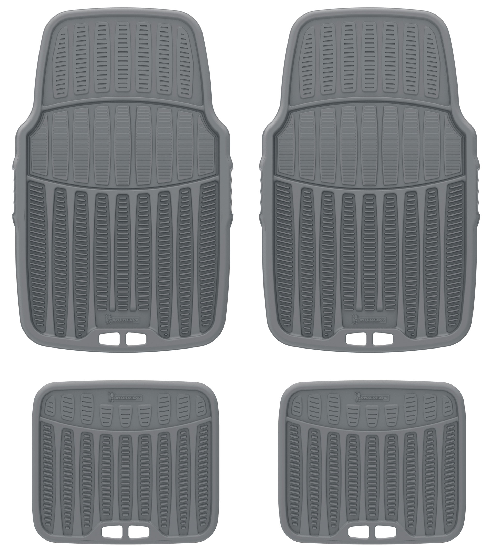 The MICHELIN All-season performance 4 Piece Car Mat Set is perfect for cars, trucks and SUVs. This 4 piece set includes 2 front mats and 2 rear mats that are stain-resistant and have a tough backing to grip to your vehicle carpet.
