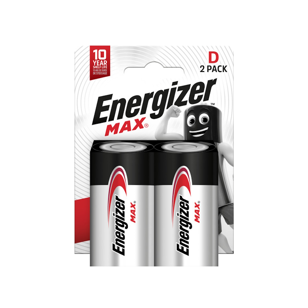 Reliable energy for your high-drain devices! Energizer MAX D batteries deliver long-lasting power and are ideal for devices such as flashlights, radios, toys, and other electronic equipment.