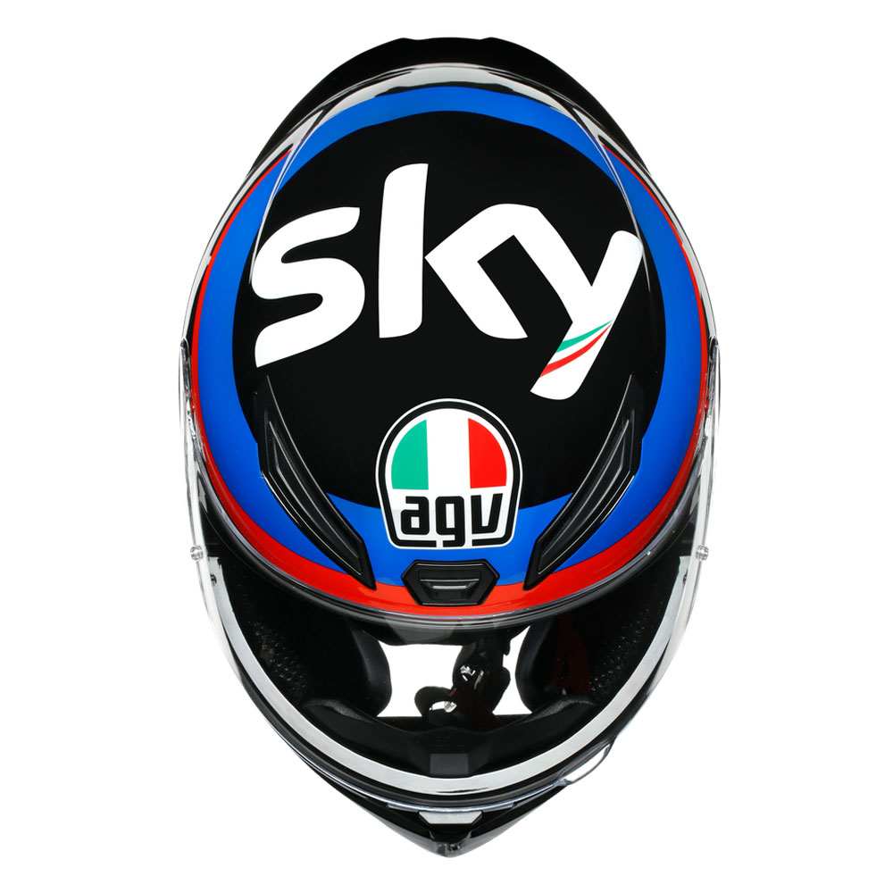 Aerodynamic shape, racing-developed front air vents and wind-tunnel engineered aero spoiler maximize performances while providing stability at higher speed. Panoramic anti-scratch visor allows a wider lateral and vertical field of vision for a total control of the environment. Comfort is no-compromise with Dry-Comfort soft removable interiors.