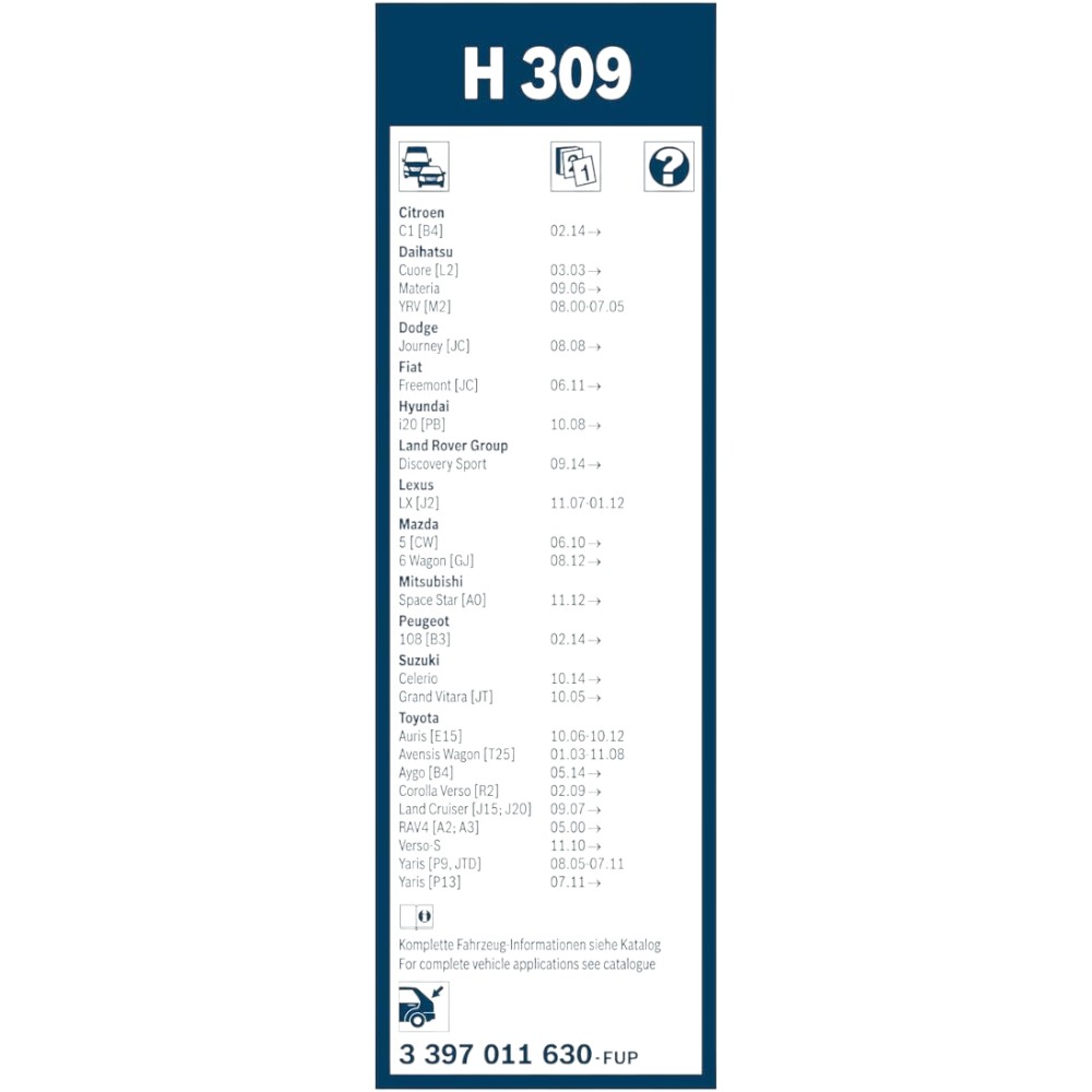 Suitable for vehicles using a 300 mm rear wiper blade – commonly used on models from Toyota, Honda, Nissan, Mazda, Hyundai, and others.