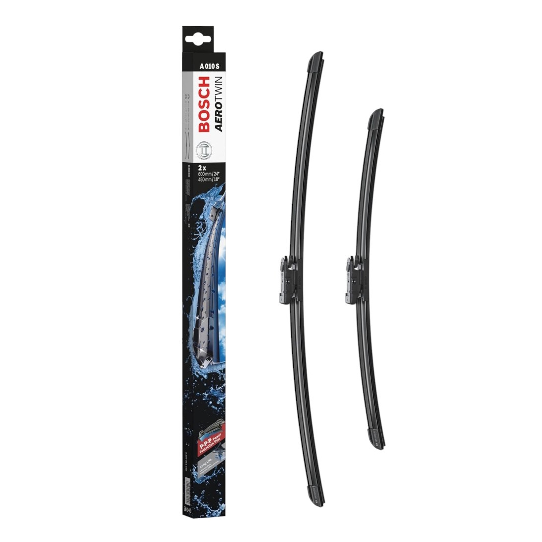 With its 600/450 mm sizes and frameless design, this wiper blade set delivers quiet, efficient, and long-lasting performance in all conditions. Trust the original Bosch quality – for safety on every journey.