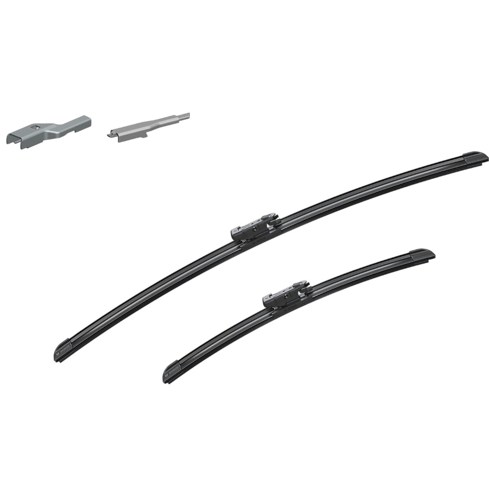 With a frameless design and lengths of 600/380 mm, this set provides perfect wiping performance and safety in all weather conditions. Bosch – quality you can trust.