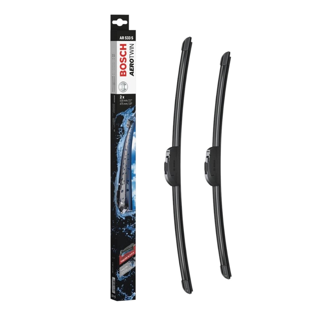 Suitable for vehicles with the AeroTwin system and hook-type wiper arms – including VW Golf, Audi A3/A4, Skoda Octavia, Mercedes A/B-Class, Ford, Opel, and others.