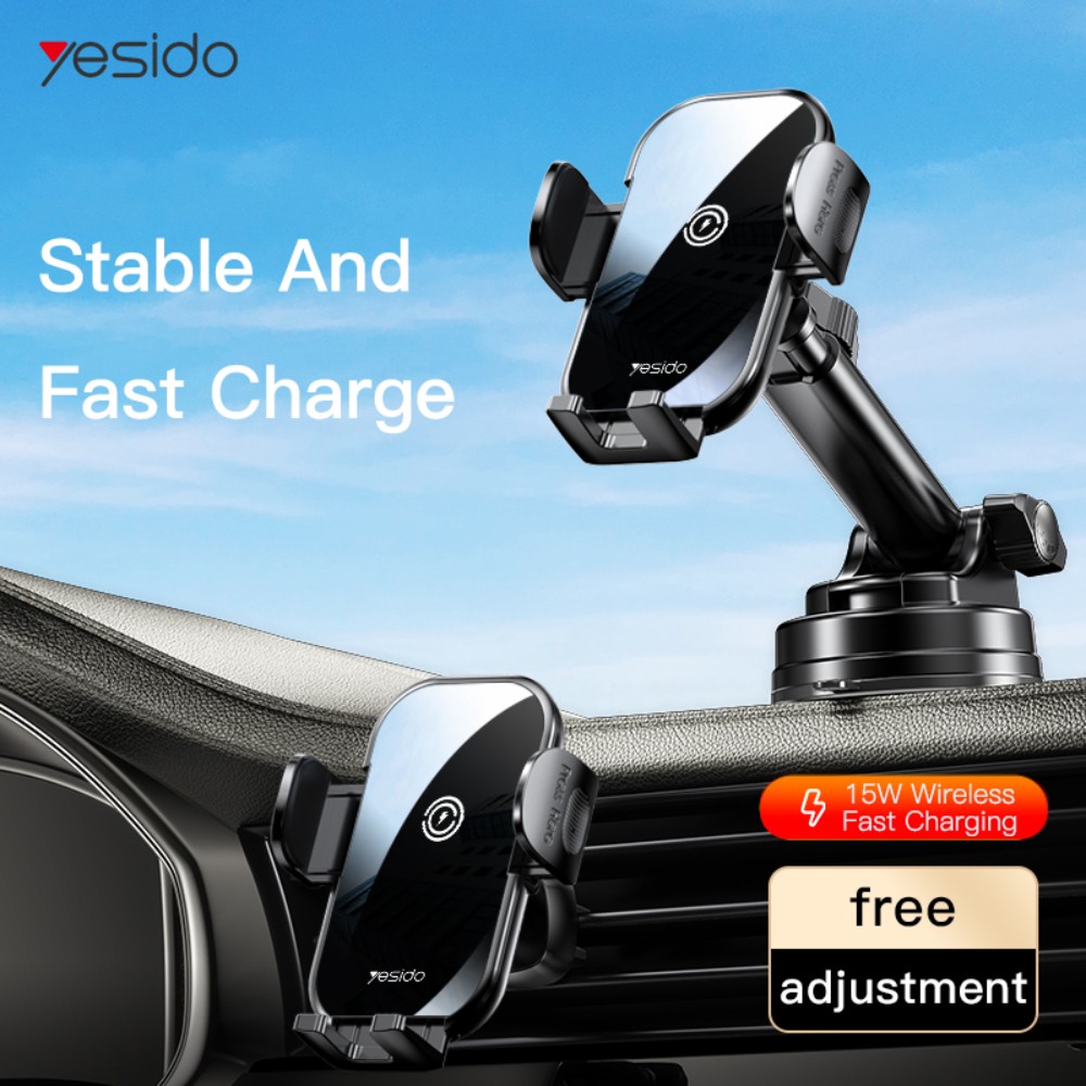 Безжично зарядно за кола YESIDO, с поставка за телефон 15W