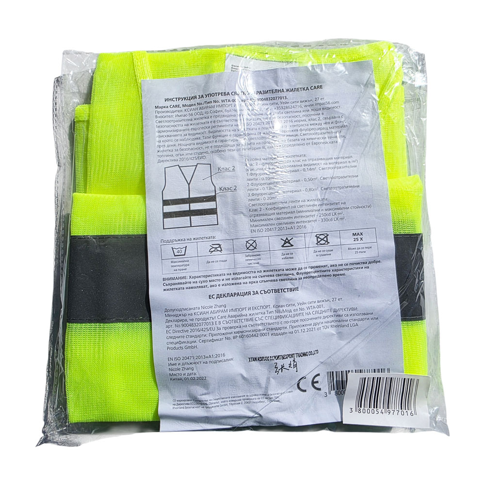 Care аварийна жилетка е задължителен аксесоар за безопасност при пътуване. Тя осигурява отлична видимост в тъмнина, мъгла или при извънредни ситуации на пътя. Изработена е от лек и удобен материал с високоотразителни ленти, които гарантират максимална сигурност.