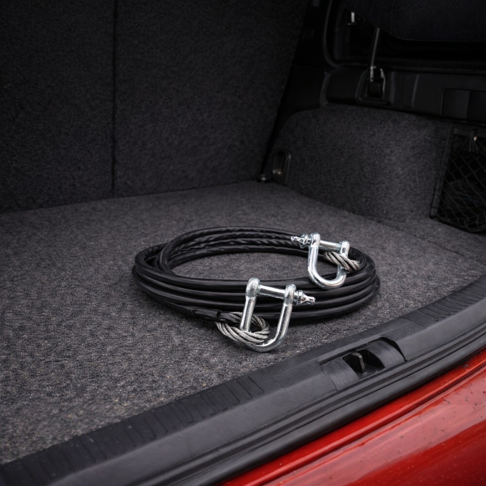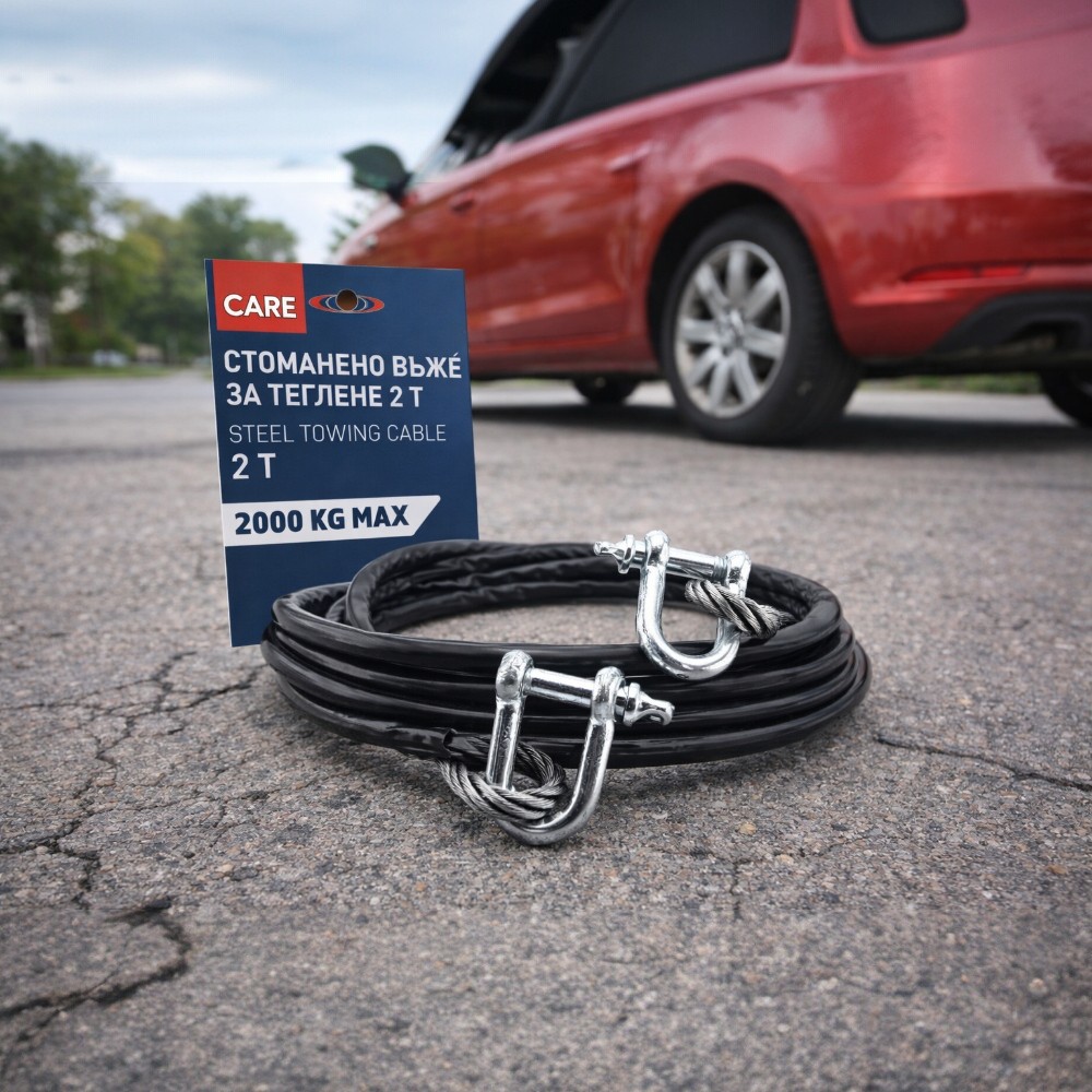 Надеждно решение за всяка извънредна ситуация на пътя – стоманено въже за теглене Care, 2 тона. С компактни размери и висока здравина, то е подходящо за аварийни случаи при автомобили от различен клас.