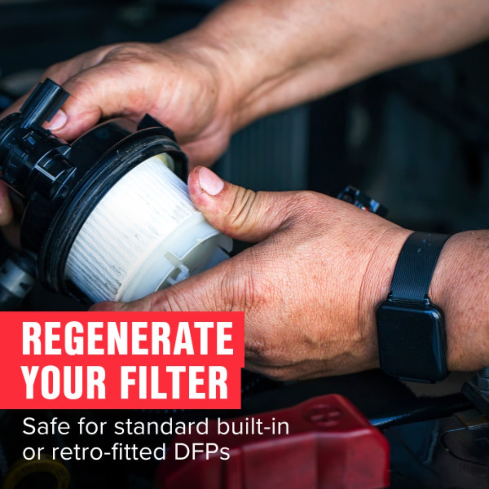 Почиства и регенерира филтъра за твърди частици, възстановява мощността, намалява емисиите и удължава живота на двигателя – само с едно добавяне в резервоара.