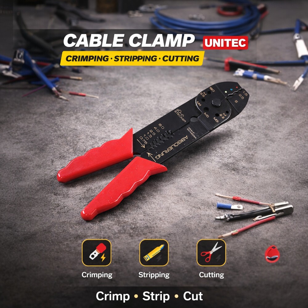 Клещите UNITEC Cable Clamp са практично и надеждно решение за всеки електротехник, автоелектрик или домашен майстор. Съчетавайки кримпване, оголване и рязане, те осигуряват бърза, прецизна и сигурна работа при електромонтажи и ремонти.