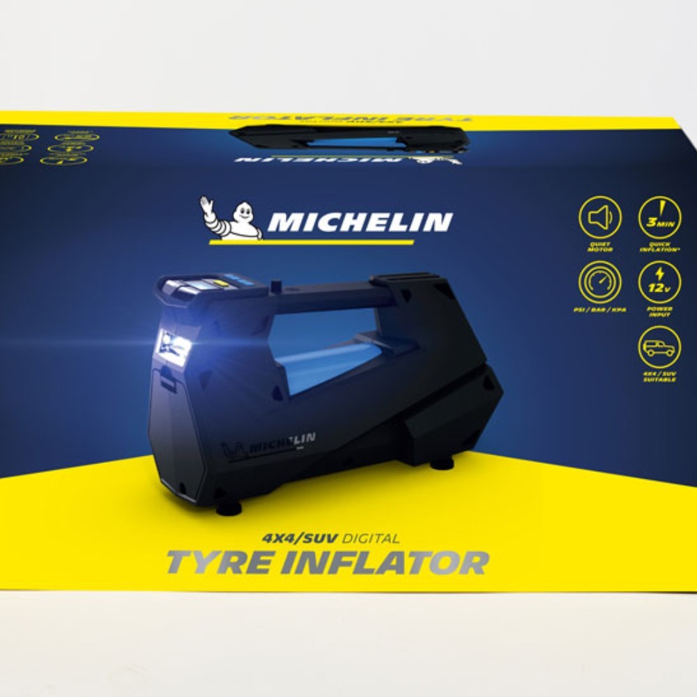 Създаден специално за нуждите на по-големи превозни средства като SUV, 4×4 и бусове, MICHELIN 4×4 Digital Tyre Inflator е мощен и надежден въздушен компресор, който осигурява бързо и прецизно напомпване на гуми при всякакви условия.