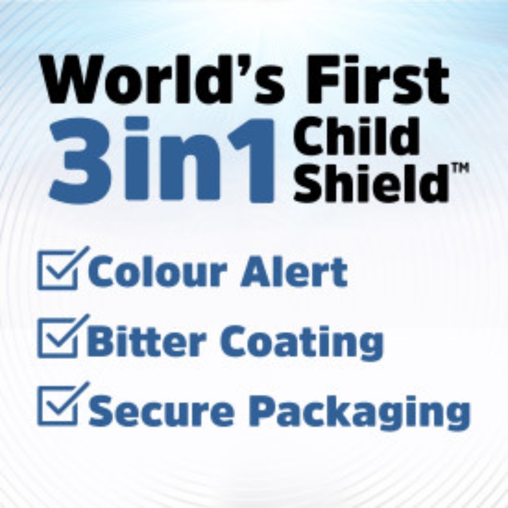 • Colour Alert – специална технология, която оцветява слюнката в синьо при контакт, сигнализирайки за възможно поглъщане
