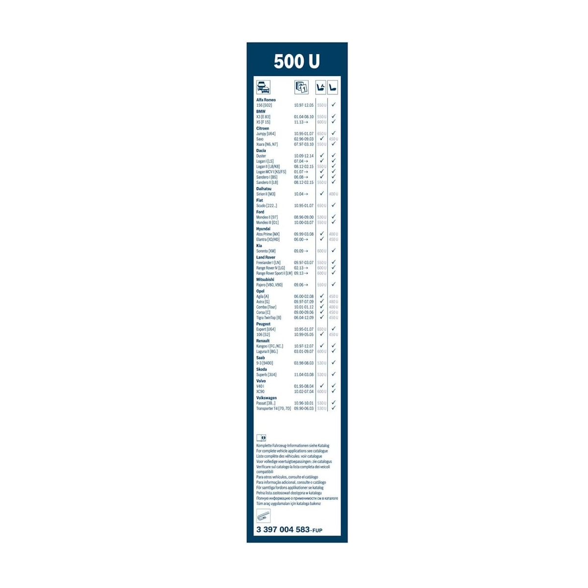 Класическо решение за чисто предно стъкло и сигурно шофиране! BOSCH Standard Twin 500U е рамкова чистачка с доказана надеждност, здрава метална конструкция и тиха работа – идеална за ежедневно каране при дъжд, сняг и прах.