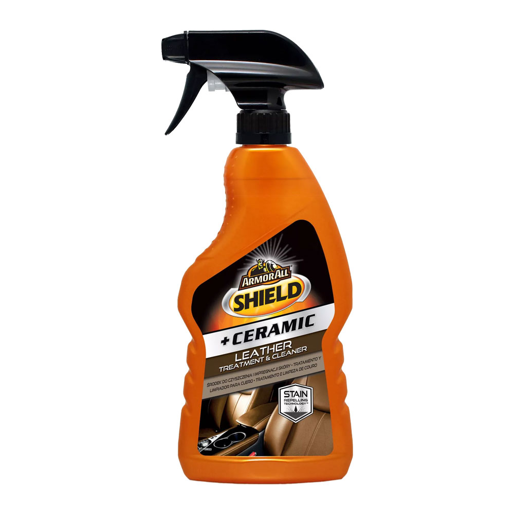 Armor All® Shield™ е препарат формулиран за безопасно почистване и доставяне на оптимизирано количество технология, базирана на Si02, която осигурява още по-голяма хидрофобна защита от необработената кожа – без да прави компромис с мекото усещане на кожените повърхности.